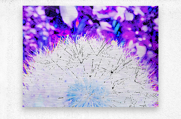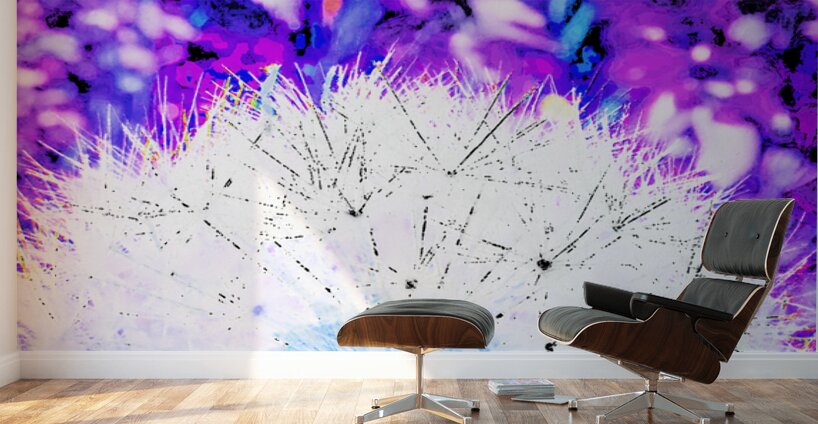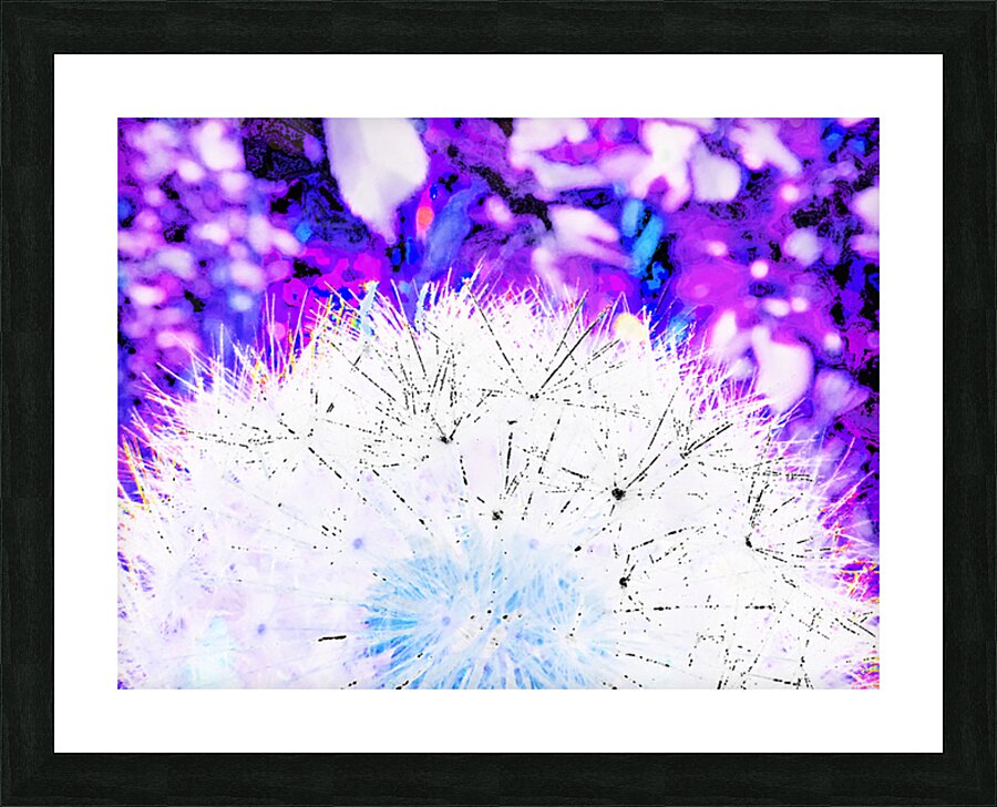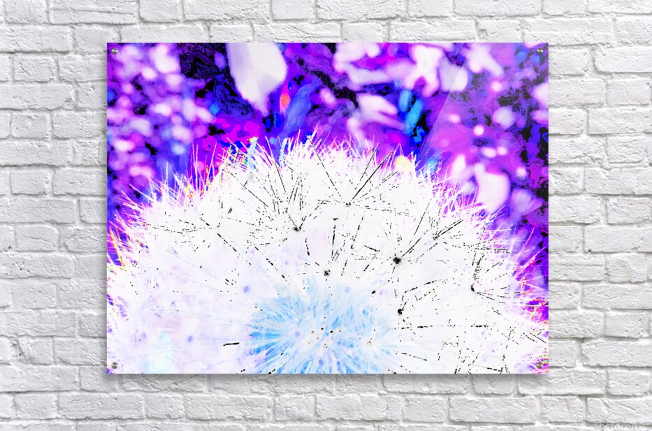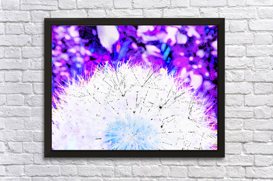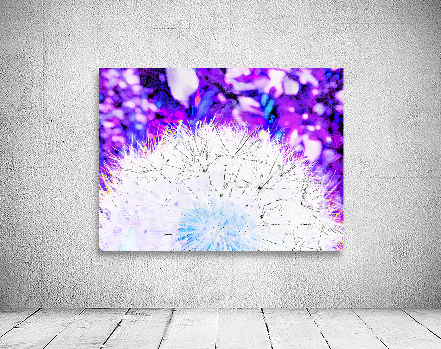 I originally took a close up photo of Dandelion seeds and laterally digitally manipulated this to create a stunning piece of contemporary floral art. Features a bright and ethereal depiction of a dandelion in seed phase set against a vibrant purple backdrop, creating a surreal and dreamlike quality. The intricate details of the dandelion's seeds stand out vividly in the composition.