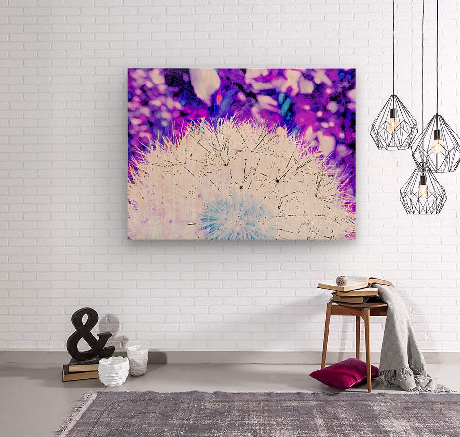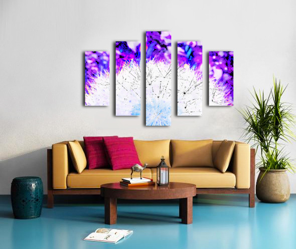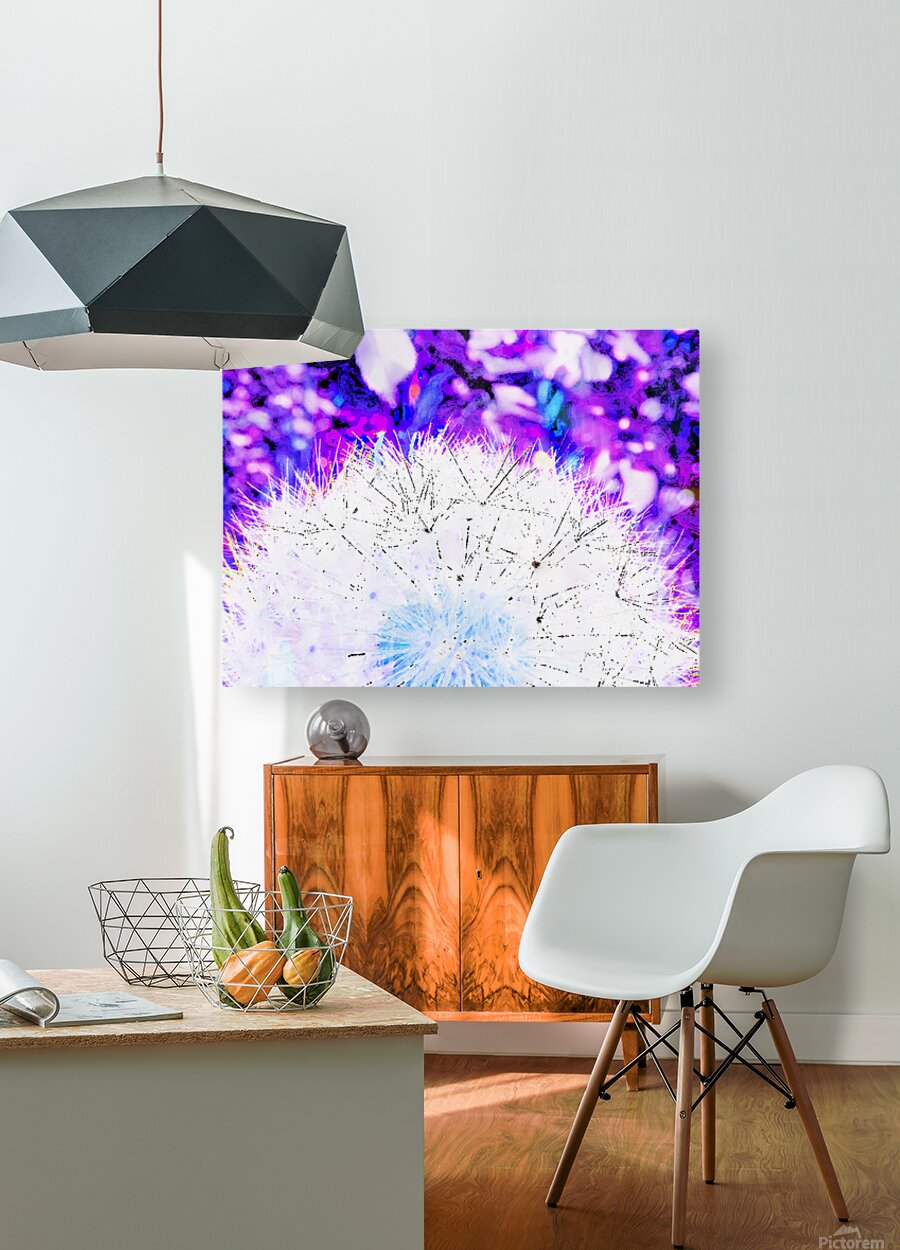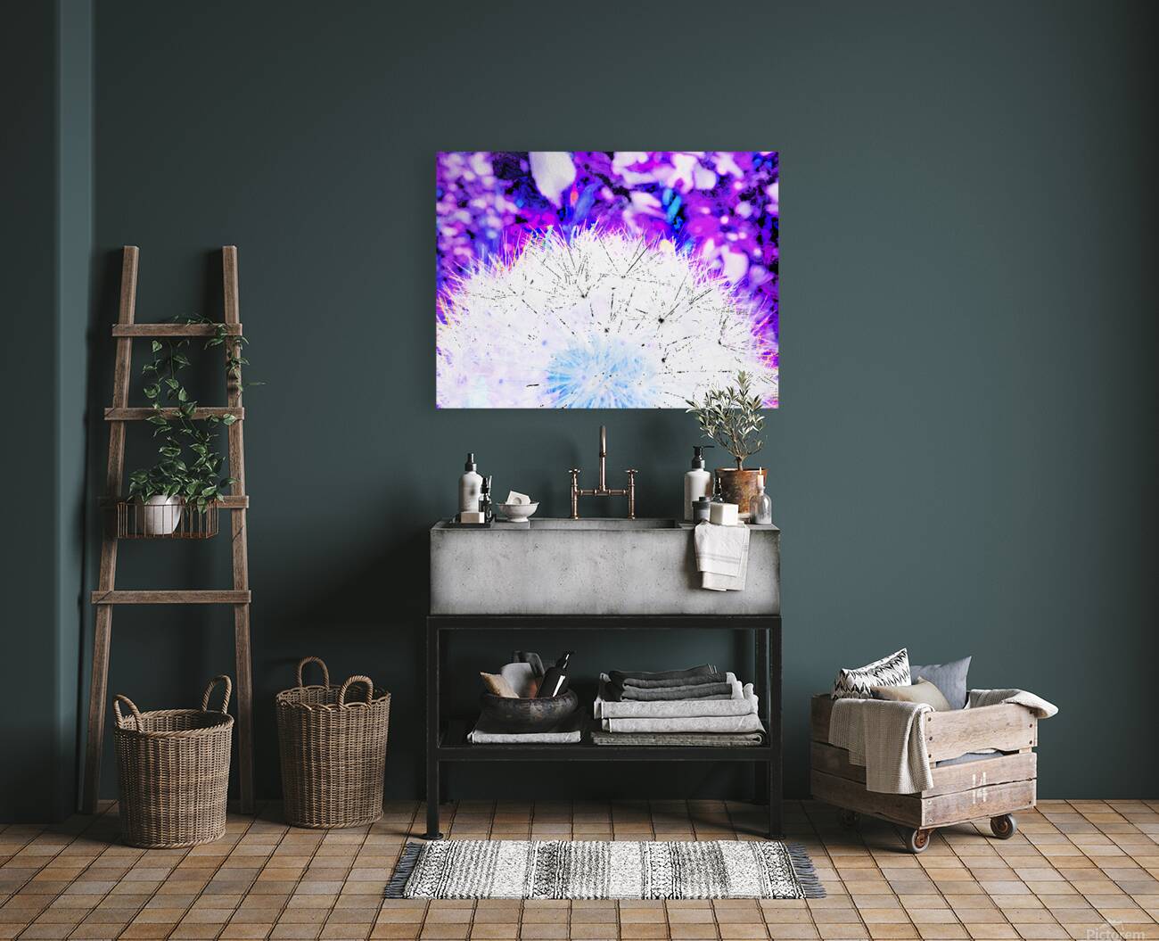 I originally took a close up photo of Dandelion seeds and laterally digitally manipulated this to create a stunning piece of contemporary floral art. Features a bright and ethereal depiction of a dandelion in seed phase set against a vibrant purple backdrop, creating a surreal and dreamlike quality. The intricate details of the dandelion's seeds stand out vividly in the composition.