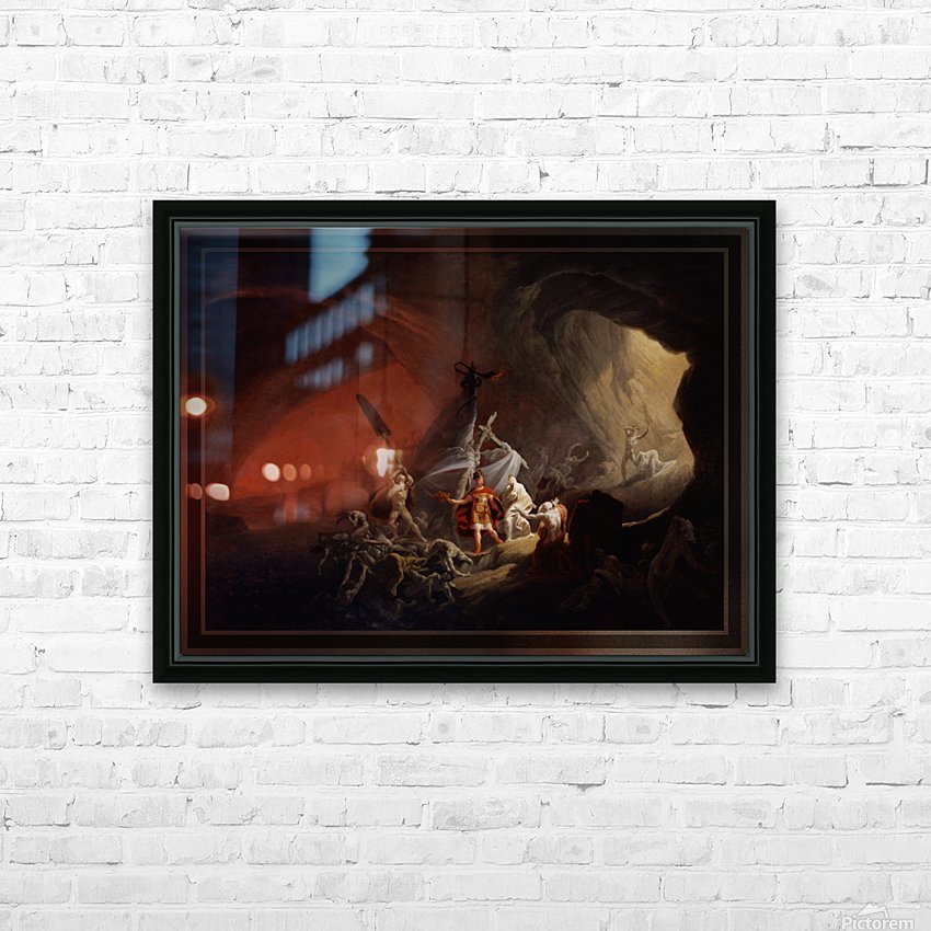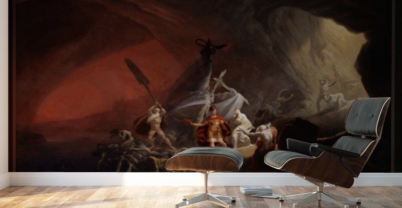 Aeneas and the Sibyl c1800 by Artist Unknown The painting from Greek Mythology depicts Aeneas being escorted into the underworld by the Sibyl at Cumae so that he may seek the counsel of his dead father. This is a retouched digital art old masters reproduction of a public domain image. Recommended Maximum Width Is 60 Inches