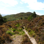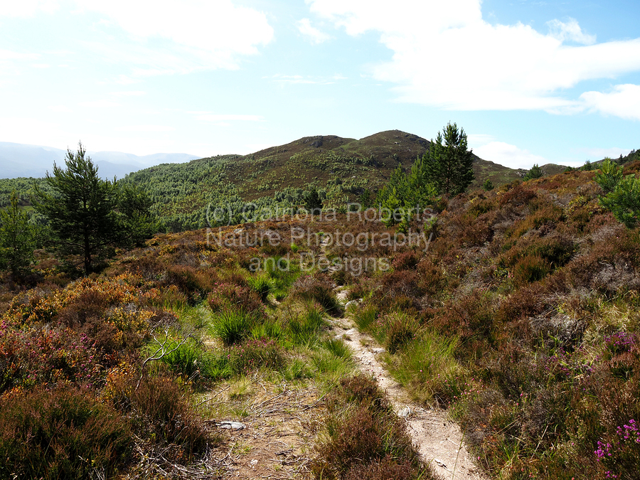 I took this photo during a lovely summer nature walk through the Scottish Highlands. Features a narrow path winding through a scenic landscape of rol...[+]