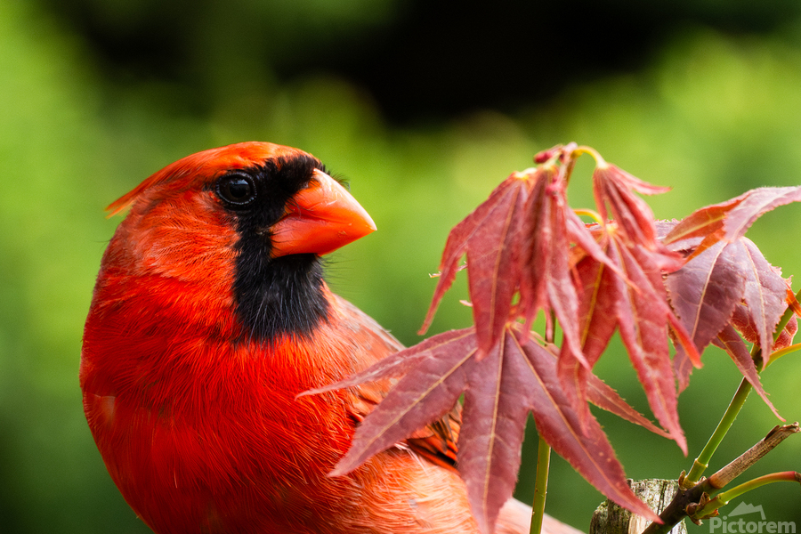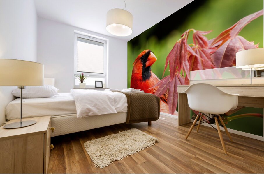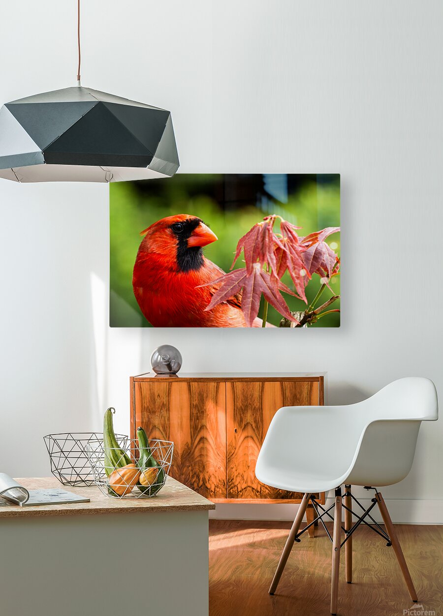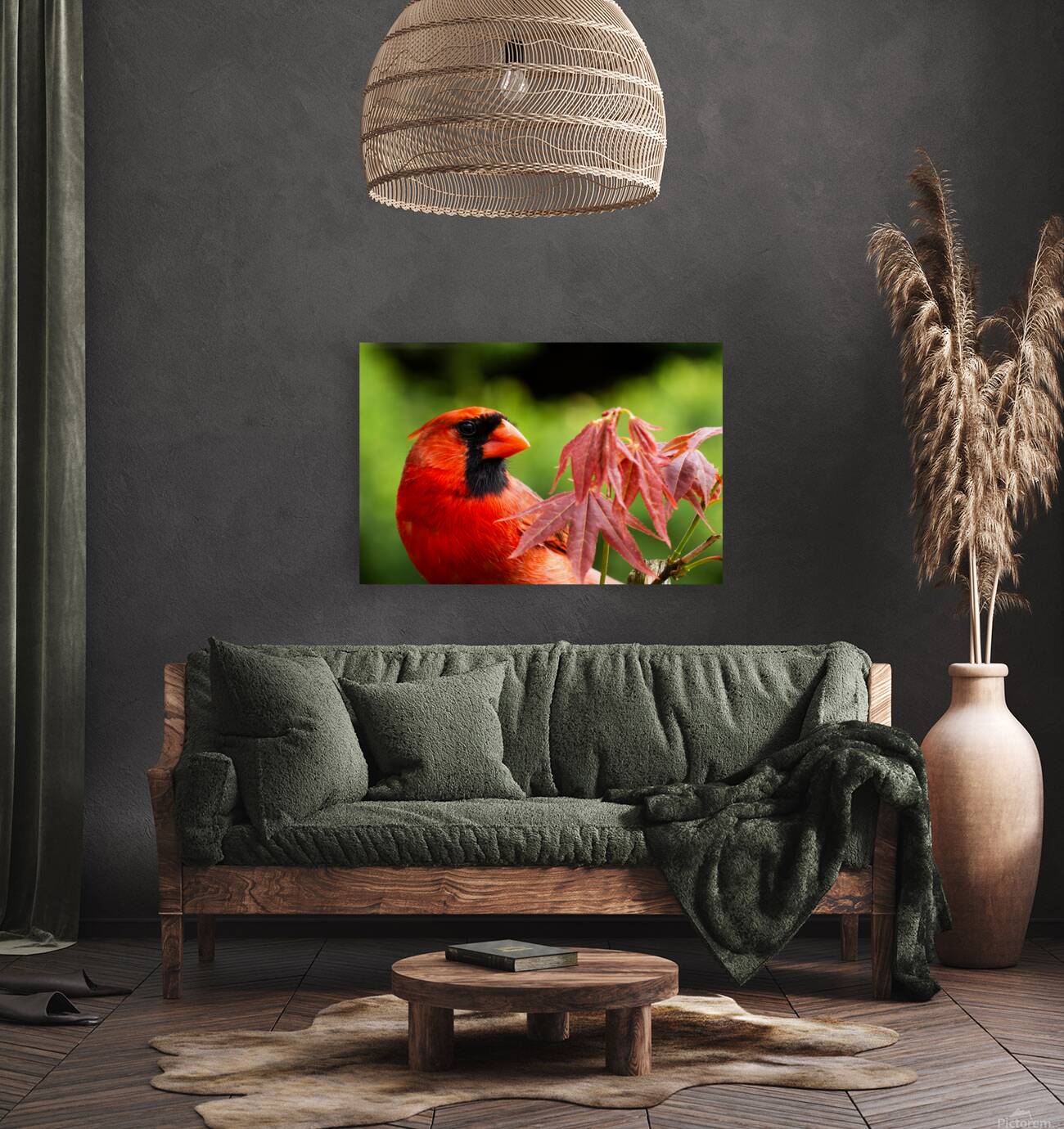 ABOUT THIS ARTWORK: NORTHERN CARDINAL AMONG MAPLE LEAVES