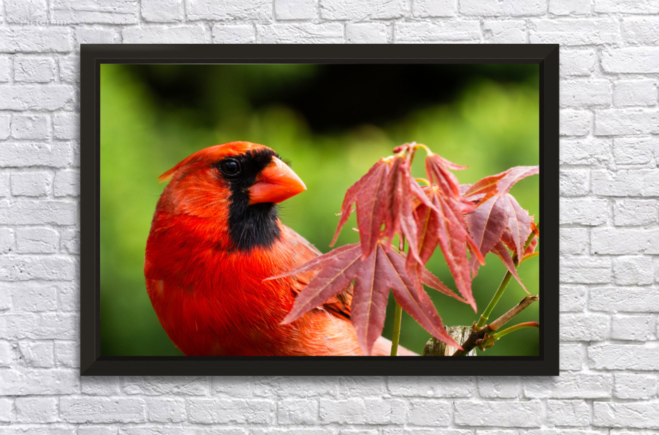 Northern Cardinal Among Maple Leaves Picture Frame Printing
