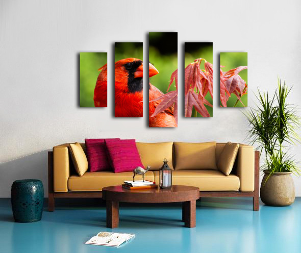 NORTHERN CARDINAL AMONG MAPLE LEAVES JASON FINK  Canvas Print