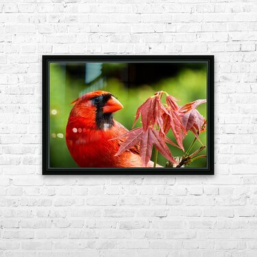 Northern Cardinal Among Maple Leaves Wall Decor Frame