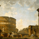 "Roman Capriccio; The Colosseum and Other Monuments" (1735) by artist Giovanni Paolo Panini (Italian, 1691-1765) | Row One | Over 19,000 Historic Can...[+]