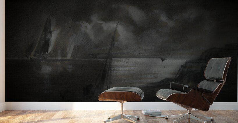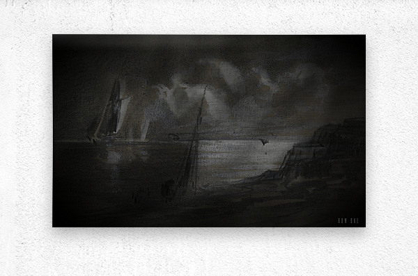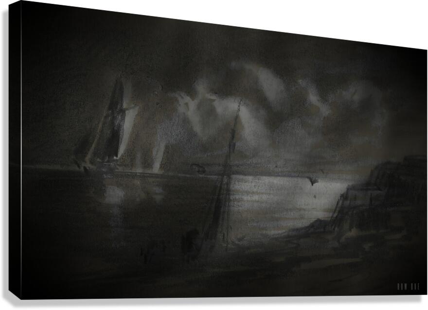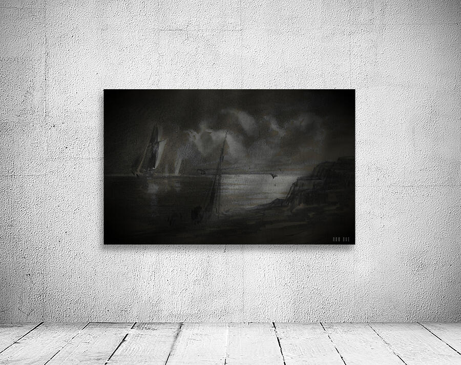 "Seacoast Moonlight Remix" | Row One Historic Art Remix | Over 19,000 Historic Art Prints | Created from "Seacoast by Moonlight" (recto) (c. 1865-1875) by artist Edward Moran (American, 1829-1901)