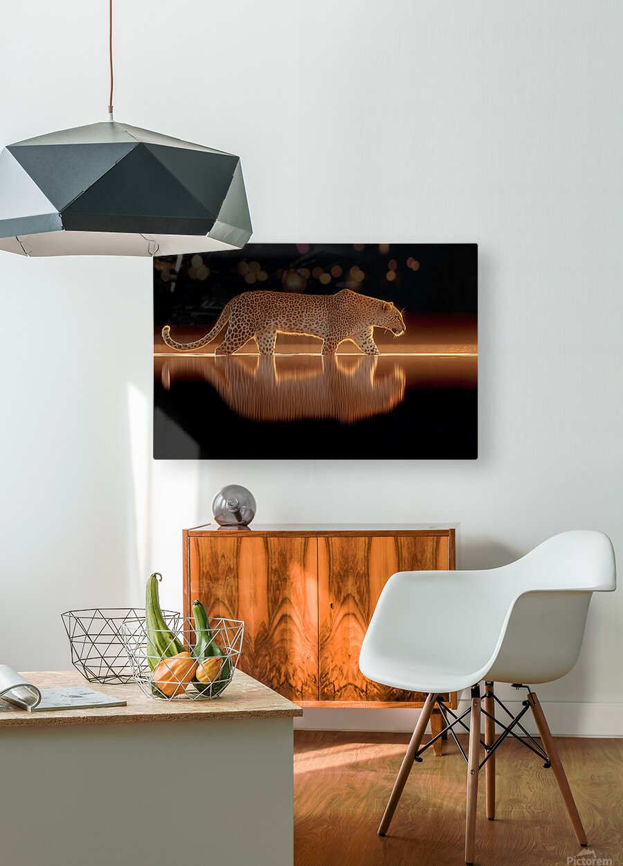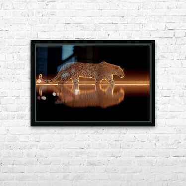 Nocturnal Grace captures the poise and fluid power of the cheetah as it steps through the mirrored edge of still water, glowing in hues of gold and amber. This minimalist yet striking composition embodies speed, precision, and quiet majesty — the essence of nature’s most elegant hunter distilled into a moment of pure reflection. The balance between darkness and light draws the eye into its symmetry, making it a bold statement piece for any refined space. Every line of muscle and curve of motion has been captured in exquisite detail, merging art and realism into a single, captivating vision. Printed as a premium fine art giclée, this piece is available in canvas, HD metal, acrylic, wood, or archival paper — ensuring museum-quality clarity and color depth. Ideal for modern homes, executive offices, and art collectors, it evokes both serenity and strength, transforming any wall into a window into the wild. Curated by Savage Art Prints