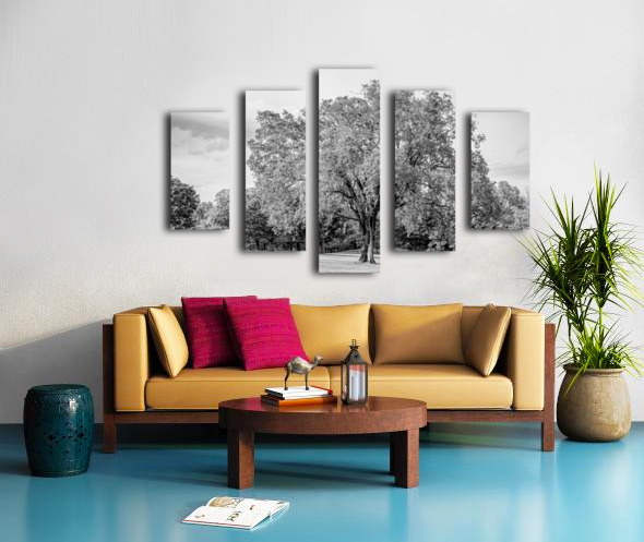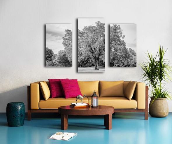 Majestic Elm In Springtime Stillness Grayscale Canvas print
