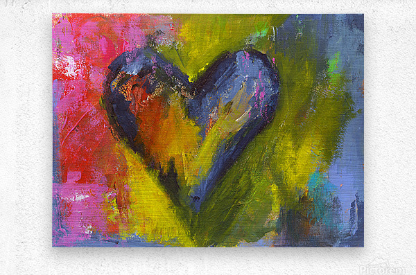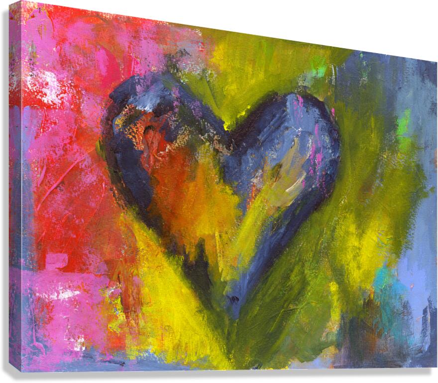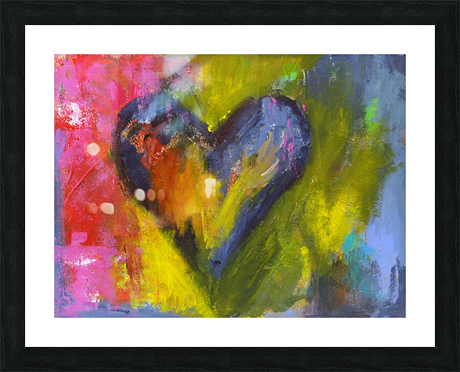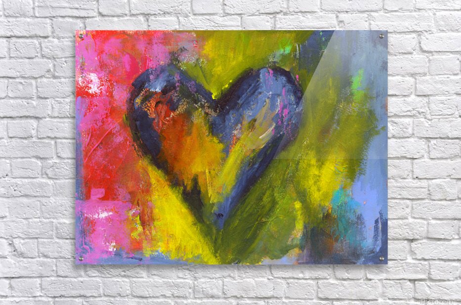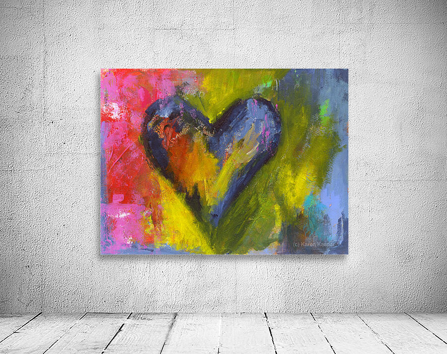 Indigo Heart is a contemporary abstract acrylic painting painted in landscape format by artist Karen Kaspar. It shows a heart shape against an abstract background. The heart is painted in all colors of the rainbow such as yellow orange red pink violet blue indigo and green. The background echoes these colors in various shades. The painting is painted with bold expressive brush strokes and the surface is textured by the partially pasty application of paint. Let your love shine in all colors. Fine art prints and home decor from original artwork paintings and photography by artist Karen Kaspar. 131