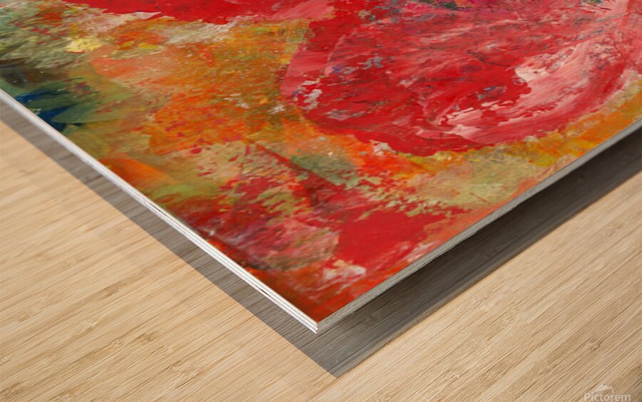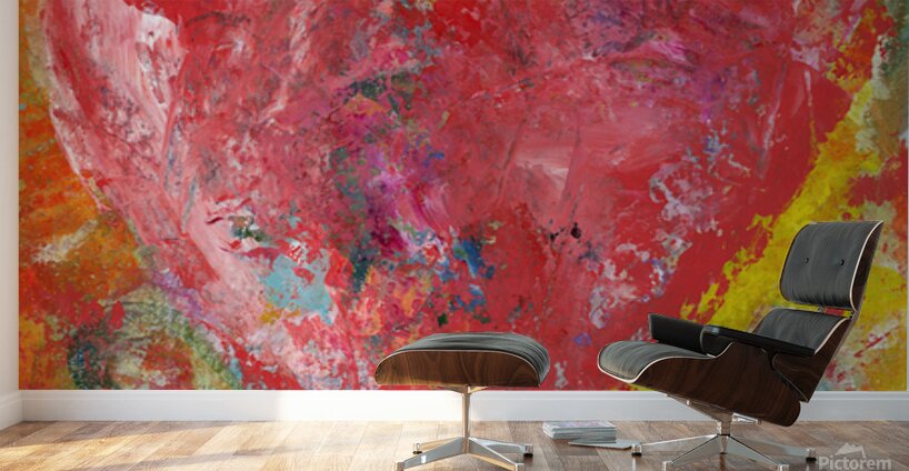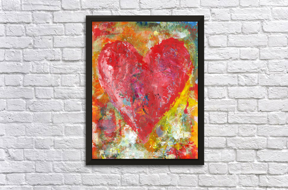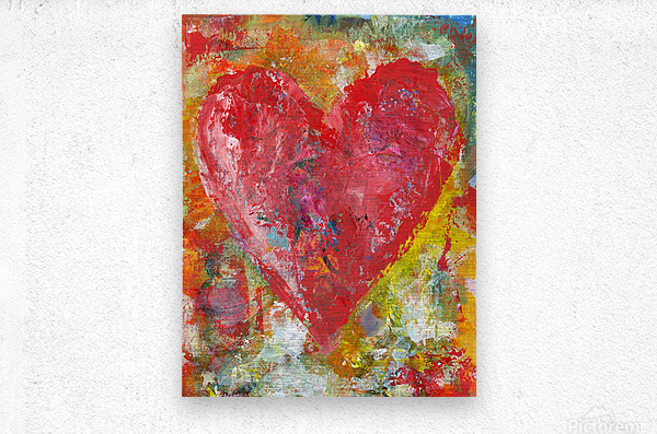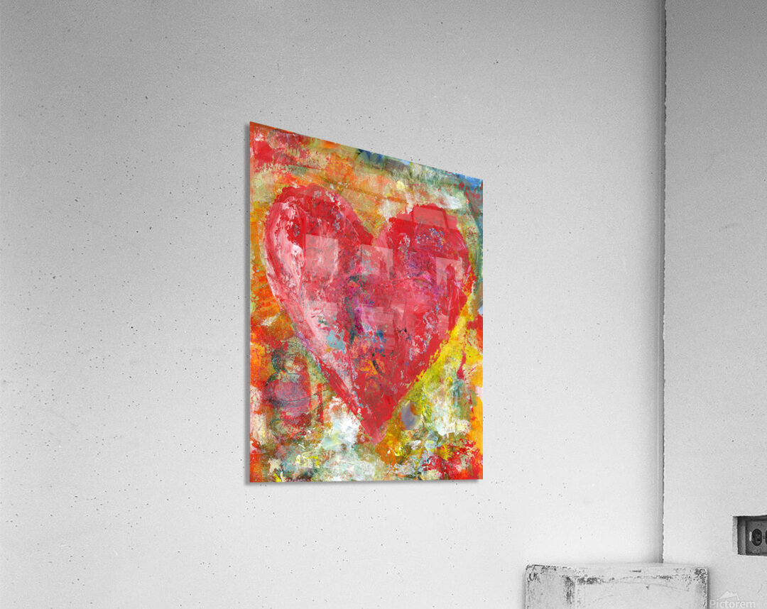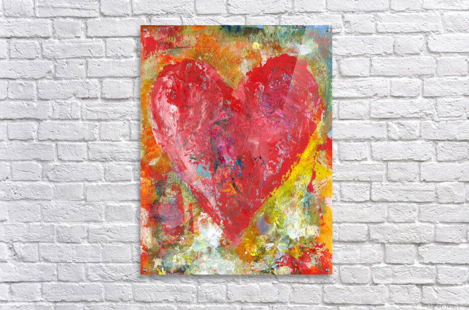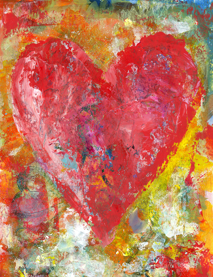 Big red heart is an expressive abstract acrylic painting in vertical format of a big red heart shape on a colorful textured background painted by arti...[+]