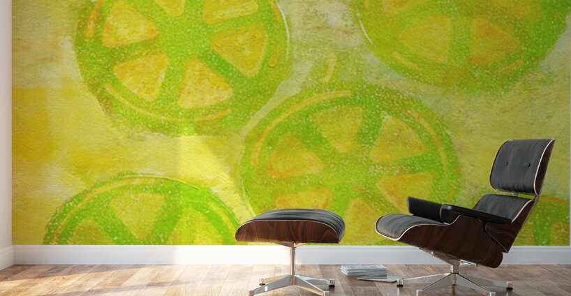 Lemon twist is an acrylic painting in portrait format painted by the artist Karen Kaspar. Slices of fresh juicy lemons in bright yellow and light gree...[+]
