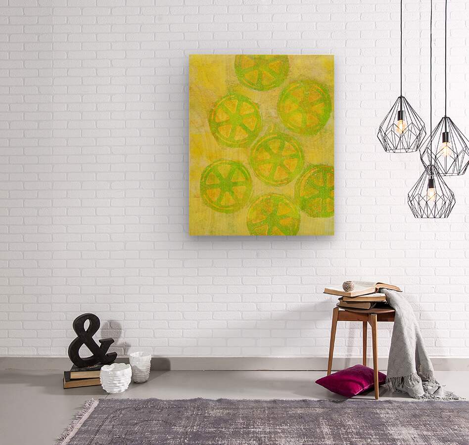 lemon twist abstract acrylic painting Wood print