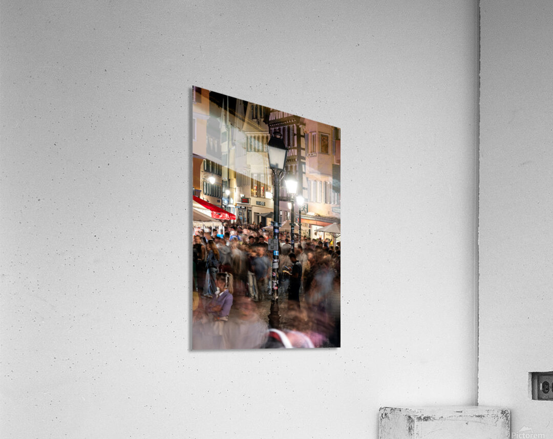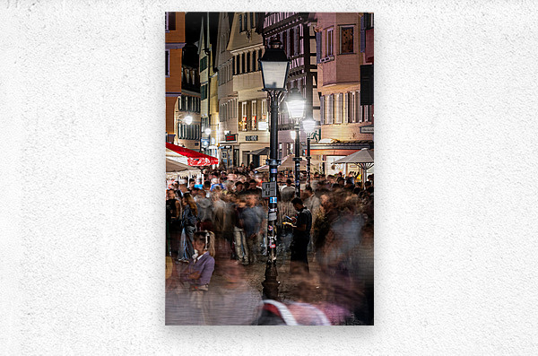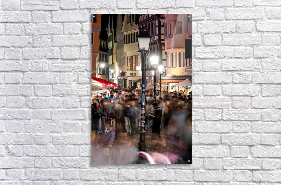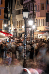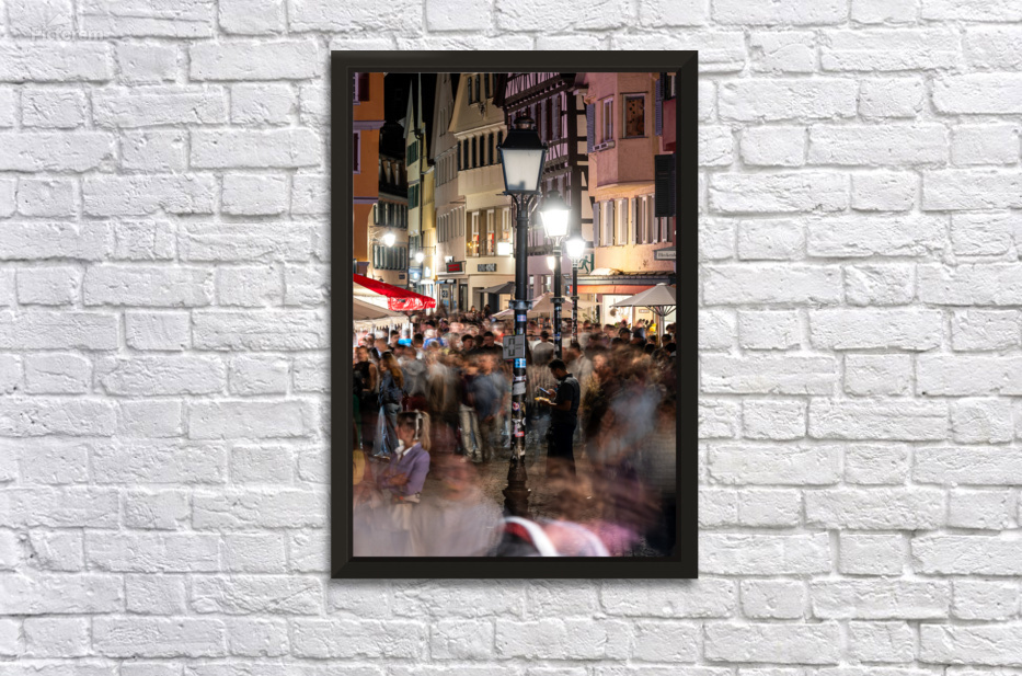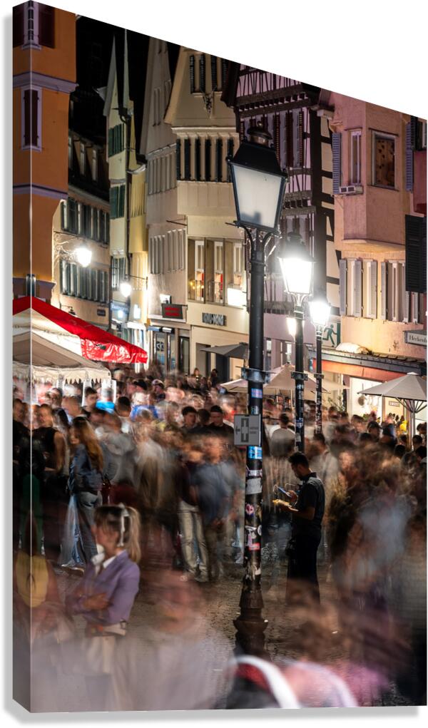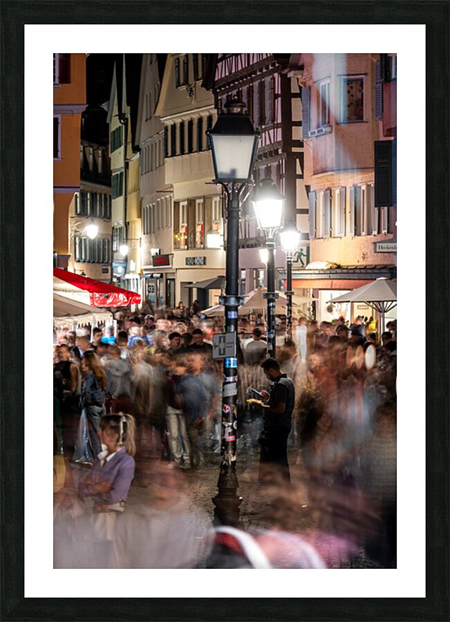 Long exposure photo of blurred people in the old town Holzmarkt of Tübingen in Southern Germany