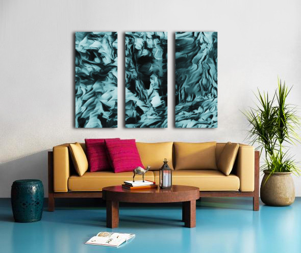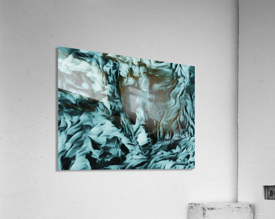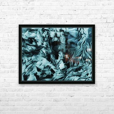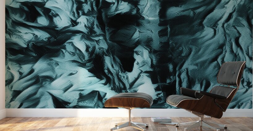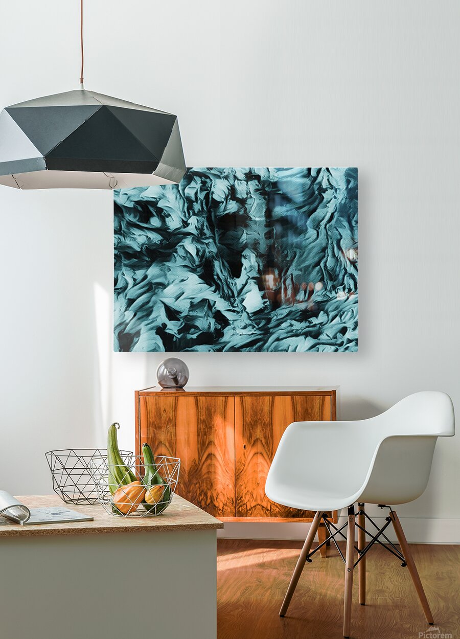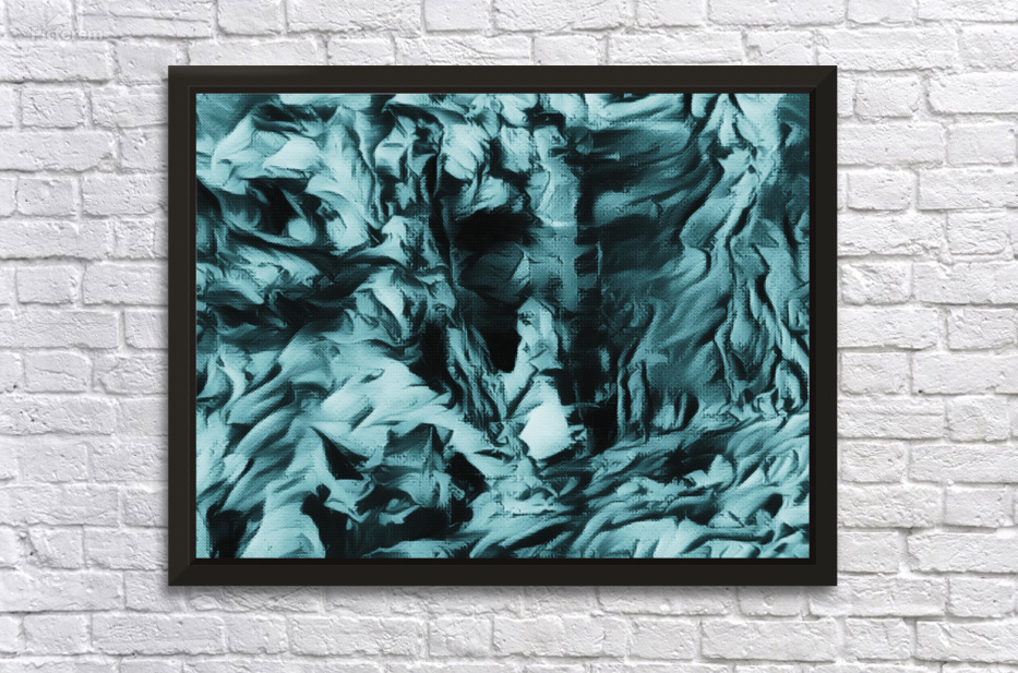 I originally painted this using acrylic and laterally digitally manipulated it ( using various creative filters in Canva.com) to create this stunning piece of contemporary art. Features swirling, textured patterns creating an abstract landscape in shades of blue and black, evoking a sense of movement and depth. The intricate, wave-like forms might remind viewers of turbulent waters or crumpled fabric. You might be able to see the face looking at you from the canvas this is the Cooler Bodach of Albany.