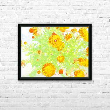 Abstract Orange Summer Flowers                                                                                                                      Picture Frame Printing