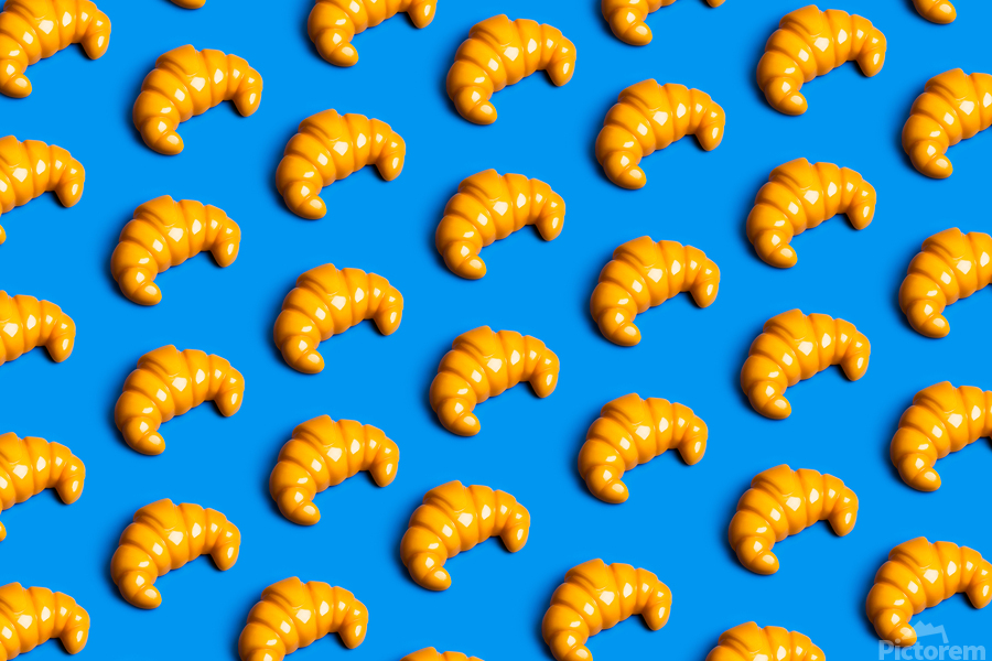 Get this artwork "Plastic croissant pattern symbolizes junk food culture critique" in a framed print.
