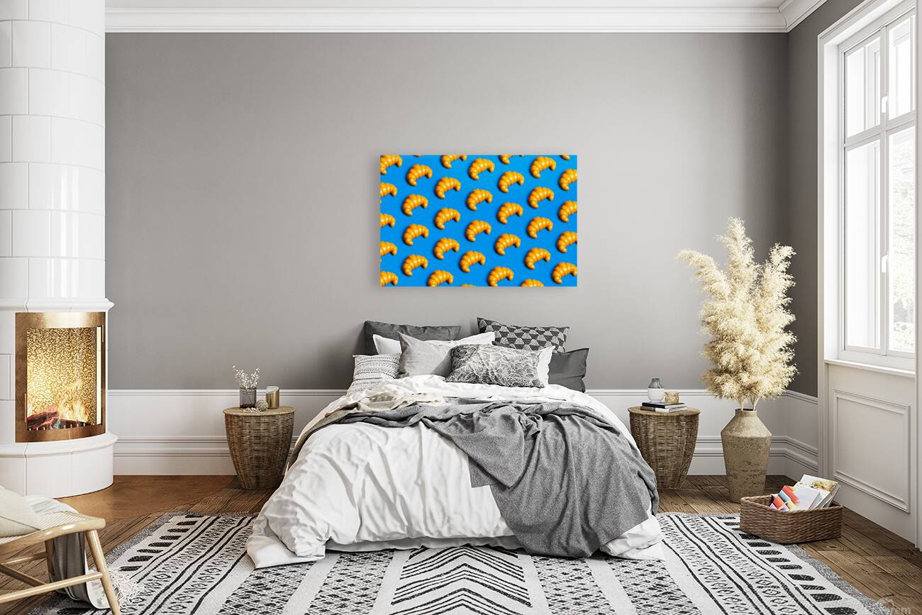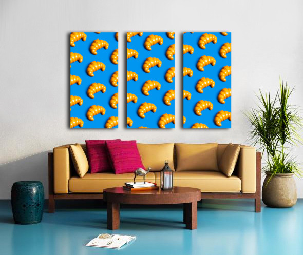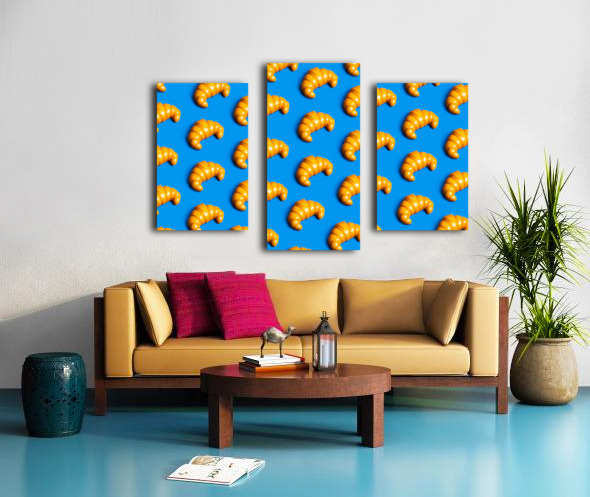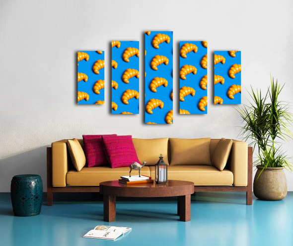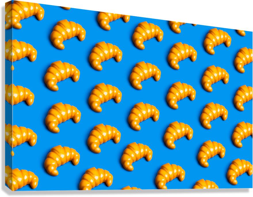 Plastic croissant pattern symbolizes junk food culture critique Canvas print