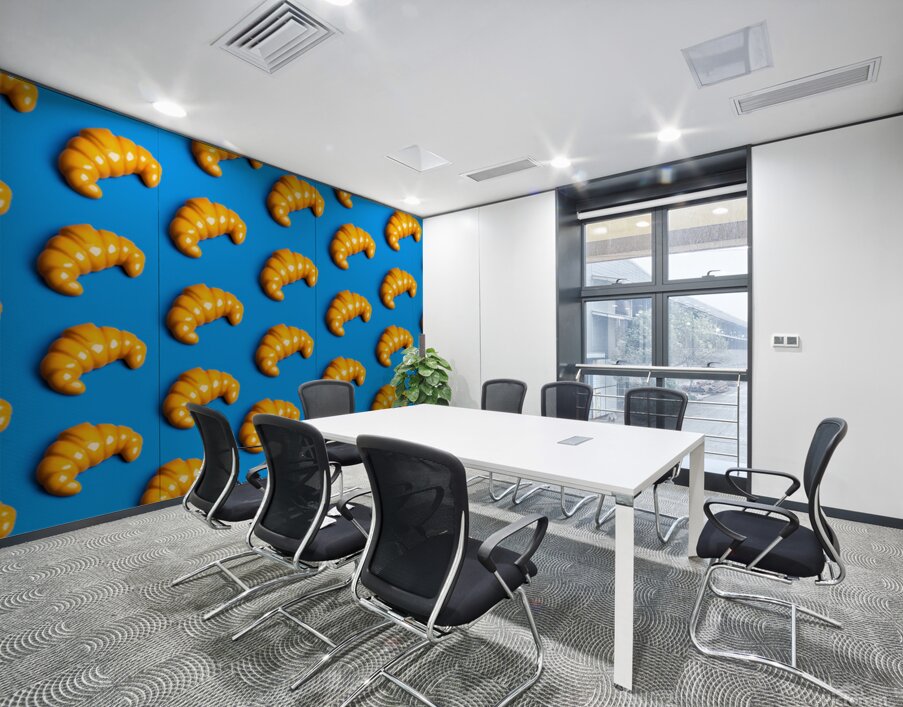 ABOUT THIS ARTWORK: PLASTIC CROISSANT PATTERN SYMBOLIZES JUNK FOOD CULTURE CRITIQUE