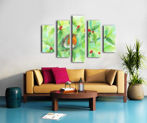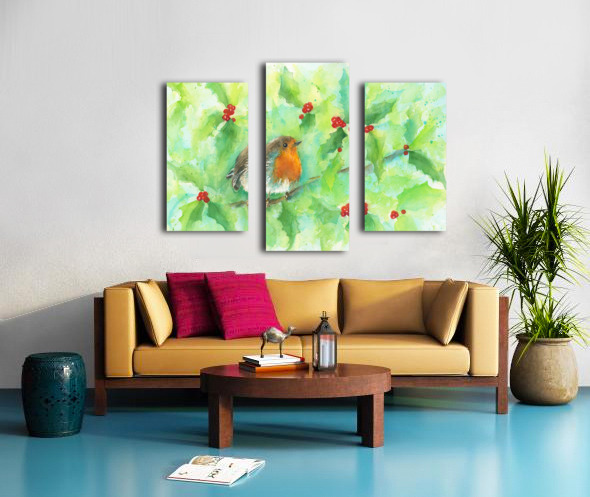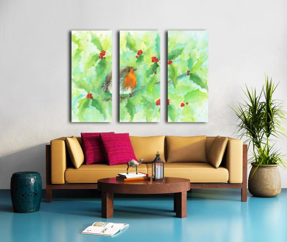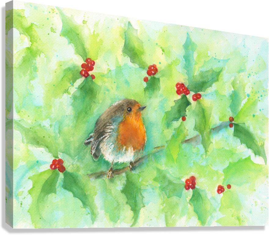 ROBIN IN A HOLLY BUSH KAREN KASPAR  Canvas Print