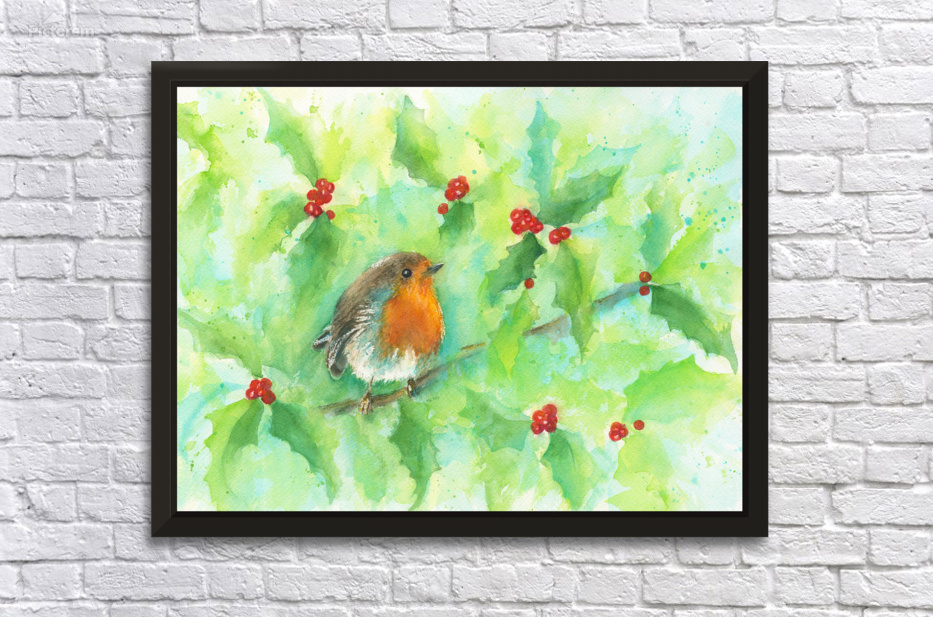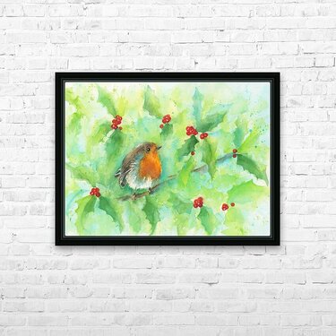 ABOUT THIS ARTWORK: ROBIN IN A HOLLY BUSH