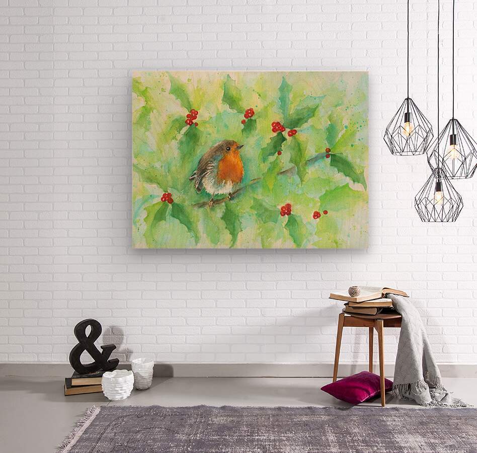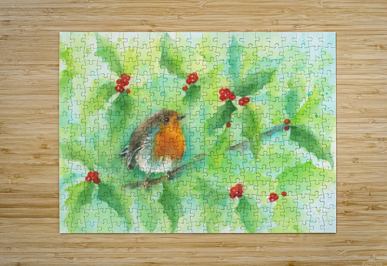 Robin in a holly bush Karen Kaspar Puzzle printing
