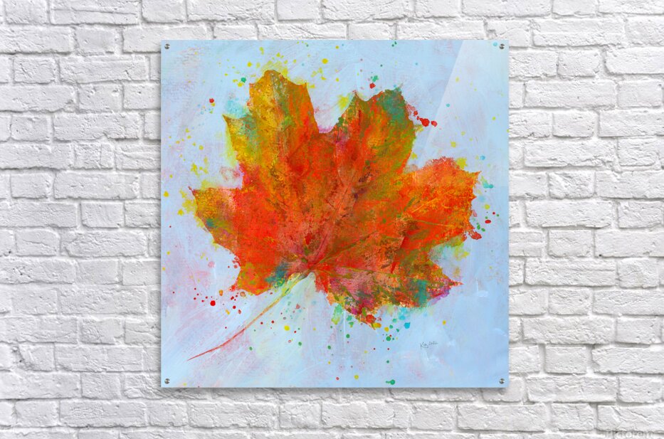 ABOUT THIS ARTWORK: SINGLE MAPLE LEAF IN FALL ACRYLIC PAINTING
