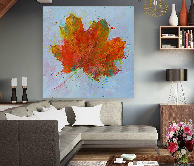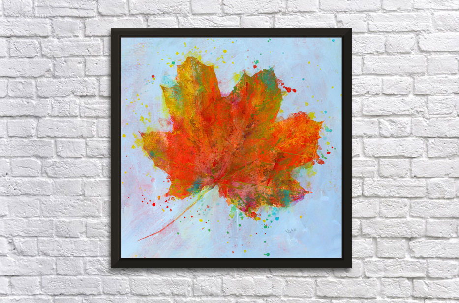 Single maple leaf in fall acrylic painting Picture Frame Printing