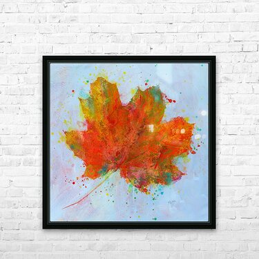 Single maple leaf in fall acrylic painting Wall Decor Frame