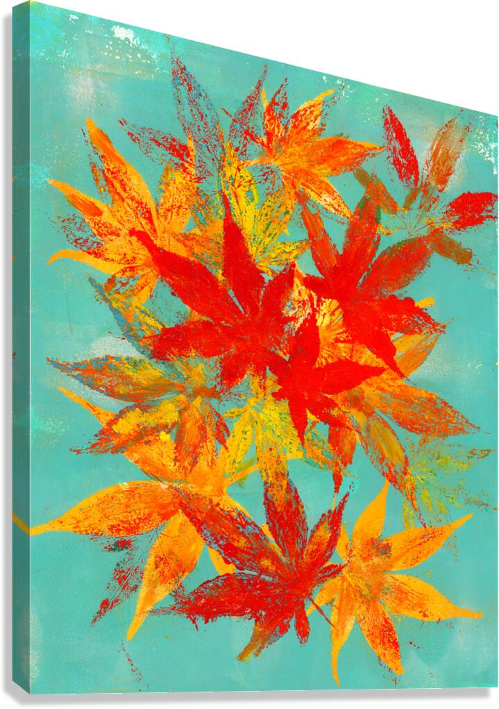 RED JAPANESE MAPLE LEAVES ON BLUE ACRYLIC PAINTING KAREN KASPAR  Canvas Print