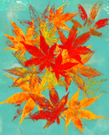 RED JAPANESE MAPLE LEAVES ON BLUE ACRYLIC PAINTING