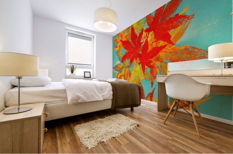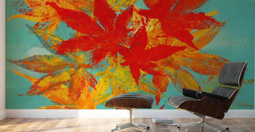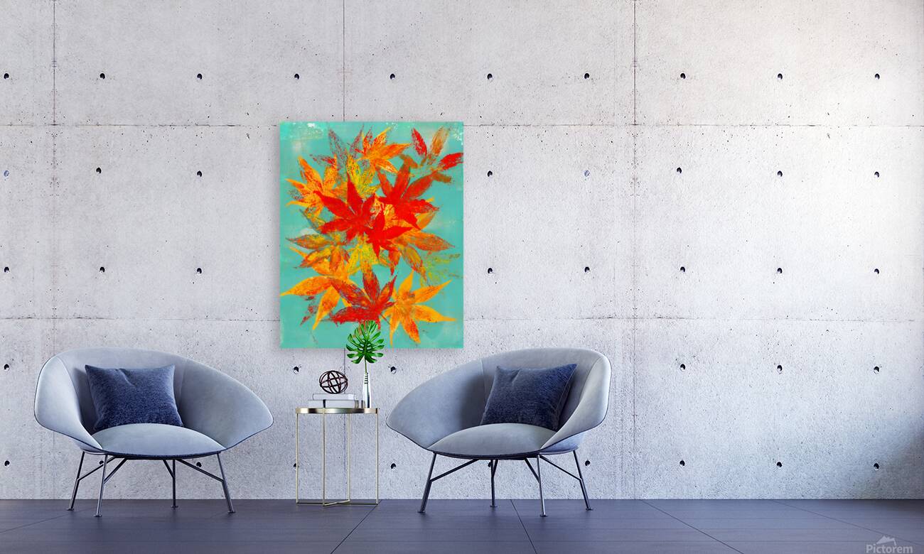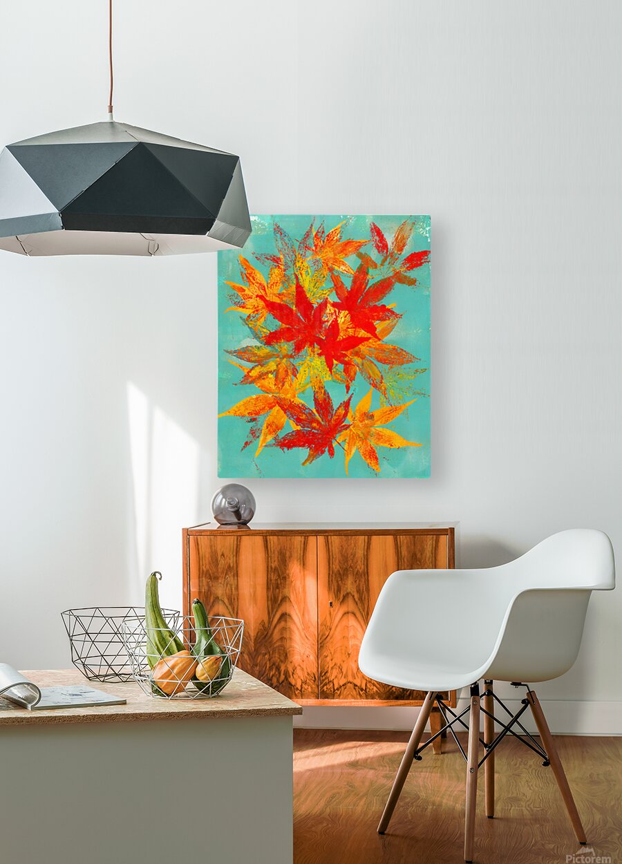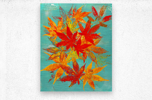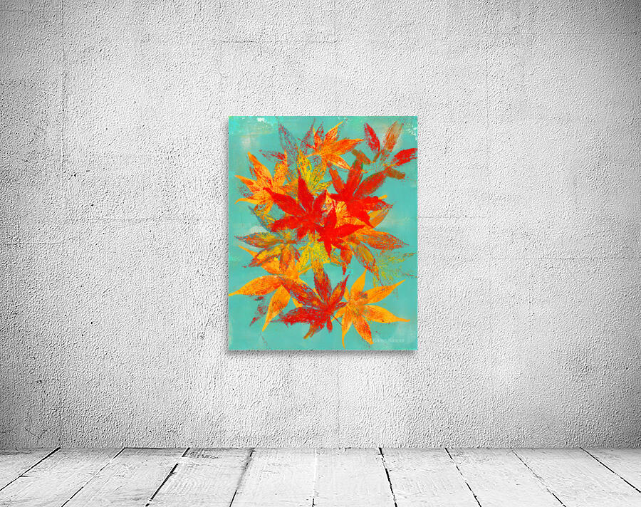 Get this artwork "Red Japanese Maple leaves on blue acrylic painting" in a framed print.
