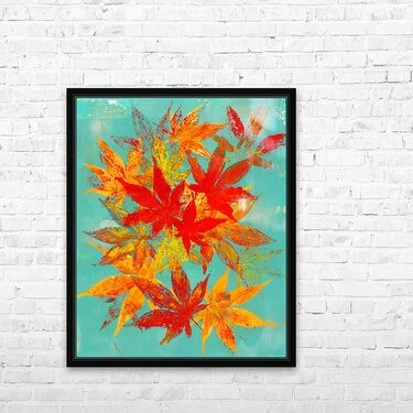 Red Japanese Maple leaves on blue acrylic painting Picture Frame Printing