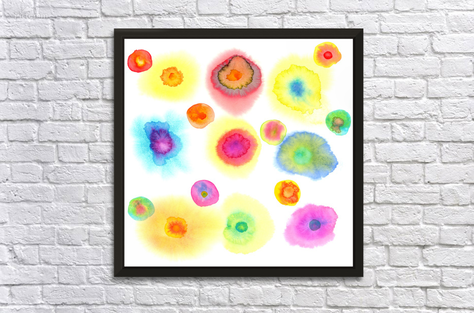 Colorful dots floating watercolor painting Frame print