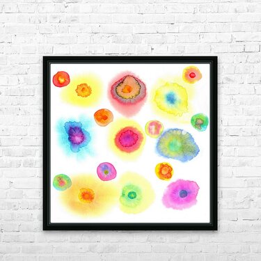 Colorful dots floating watercolor painting Wall Decor Frame