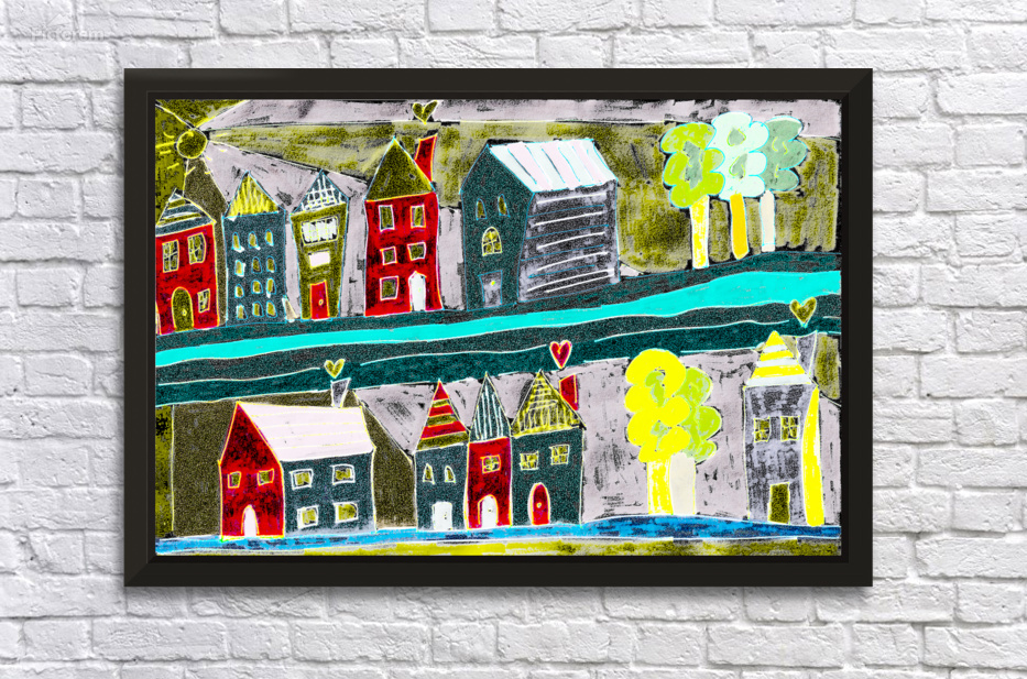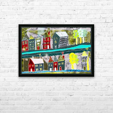 Get this artwork "Abstract Vibrant Village" in a framed print.