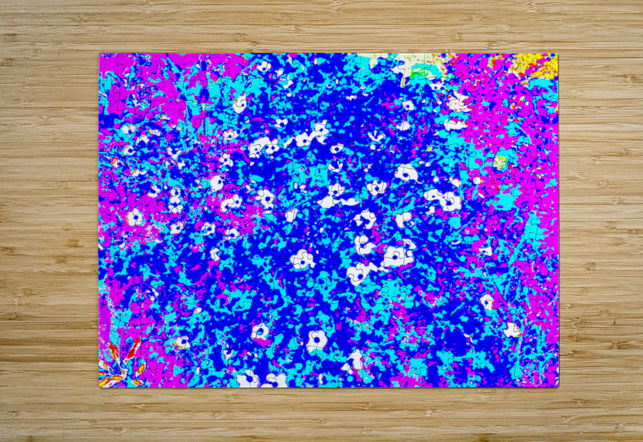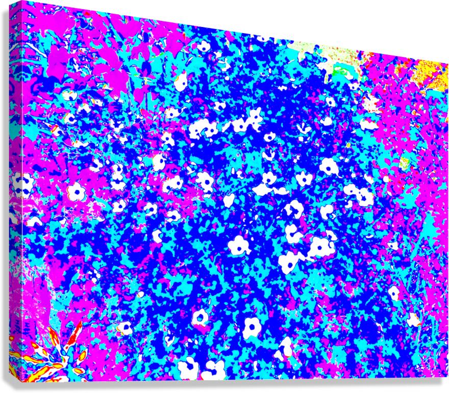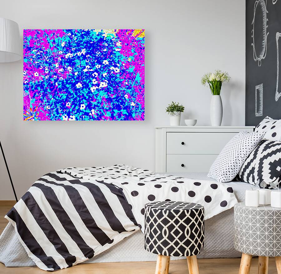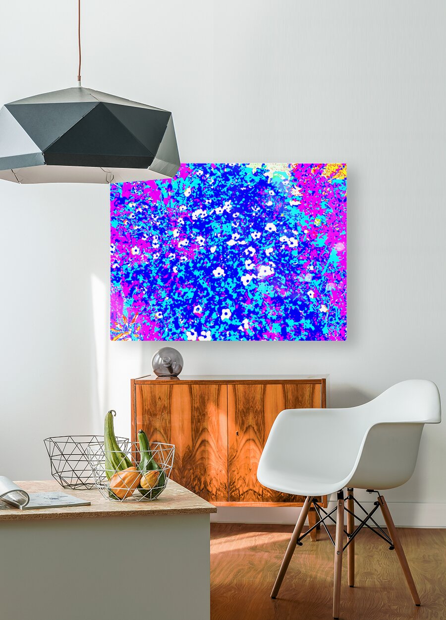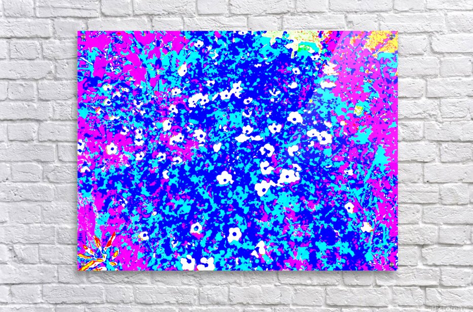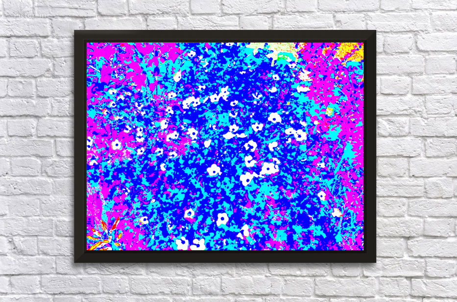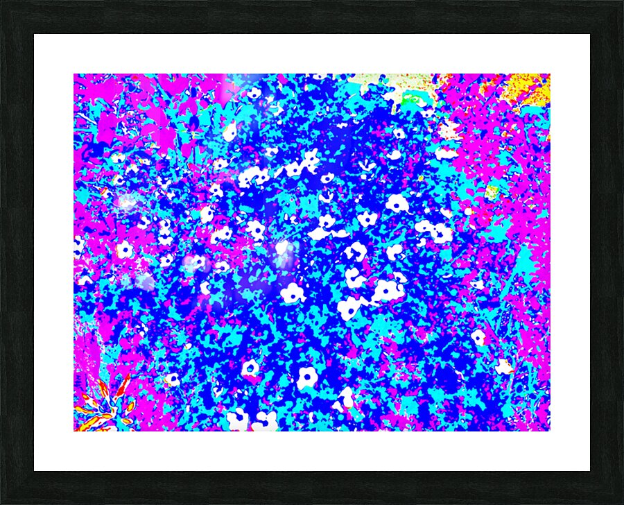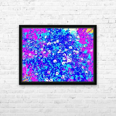 I took this photo during a lovely summer's day and laterally digitally colour edited it to create a stunning piece of floral abstract art. Features bright colors of pink, blue, and white creating an abstract depiction of a floral scene, with small, scattered white flowers. Bold contrasts and vivid hues give the image a lively, energetic feel.