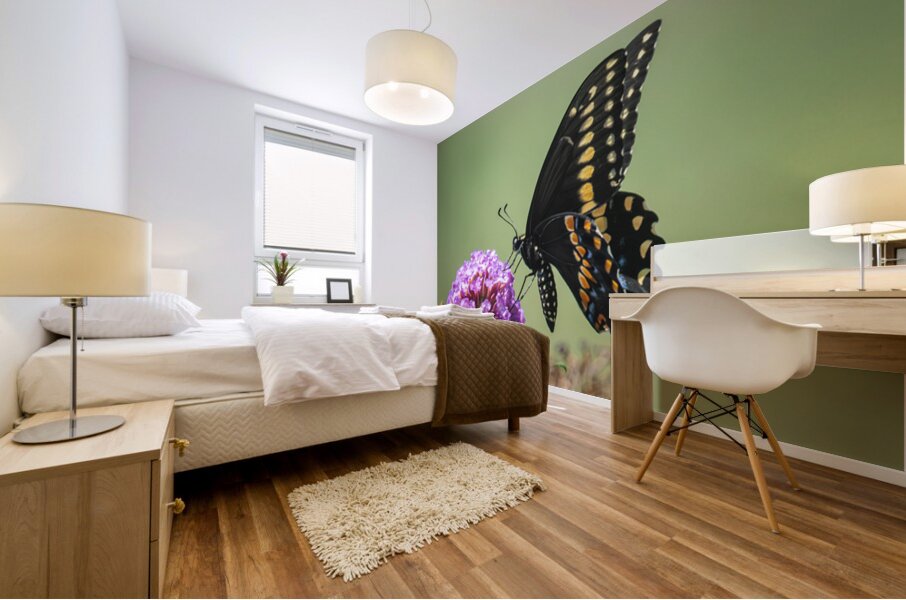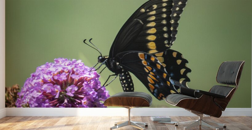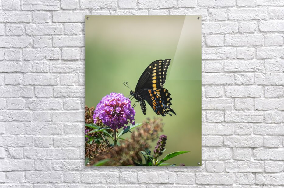 ABOUT THIS ARTWORK: BLACK SWALLOWTAIL ON A PINK BUTTERFLY BUSH