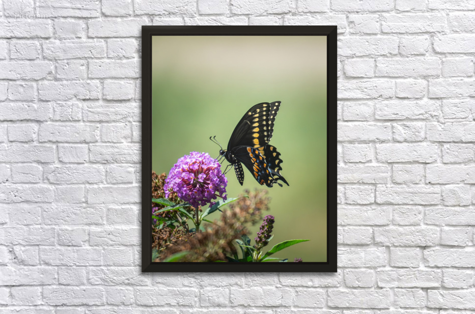 Black Swallowtail on a Pink Butterfly Bush Picture Frame Printing