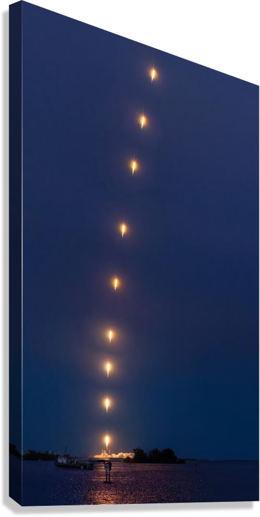 SPACEX NIGHTTIME  LAUNCH SEQUENCE CAPTURED OVER WATER NORMA BRANDSBERG PHOTOGRAPHY  Canvas Print