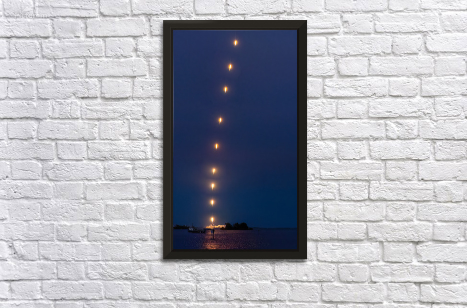 SpaceX Nighttime  Launch Sequence Captured Over Water Wall Decor Frame