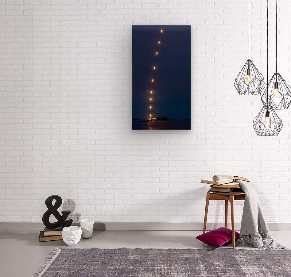 SpaceX Nighttime  Launch Sequence Captured Over Water  Wood print