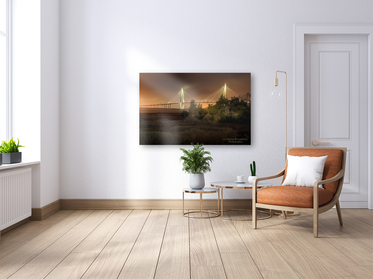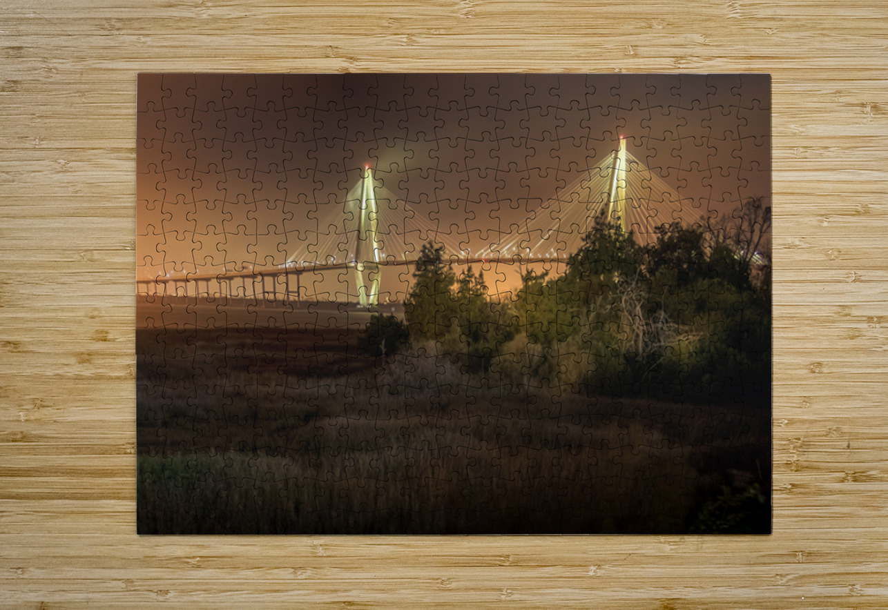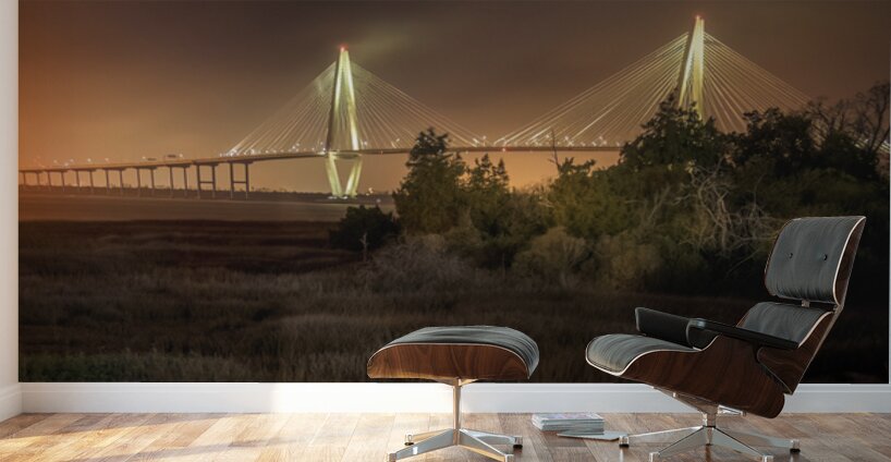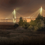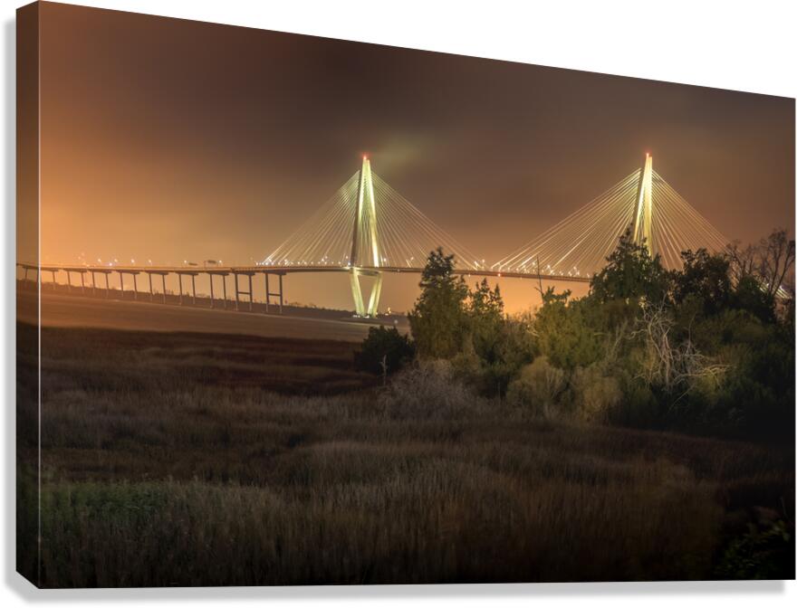 Elegant striking architecture, among the best in the Charleston, South Carolinia Lowcountry. What better way to celebrate the beginning of the New Year than to see the glow and appreciate the wonder of this cable-stayed panorama skyline! The fog rolling in and out over the winter evening made for a opportunity to photograph this skyline and Cooper River in a variety of lighting conditions.