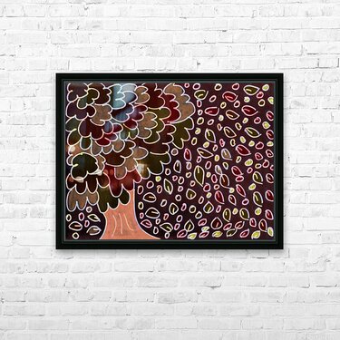ABOUT THIS ARTWORK: ABSTRACT BROWN OAK WITH FALLING LEAVES