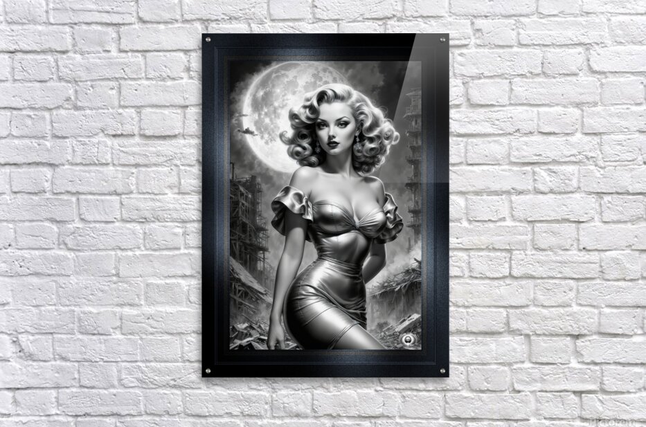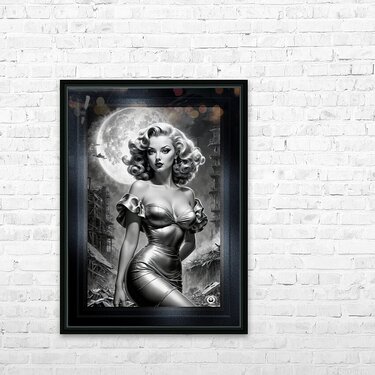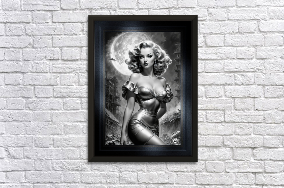 Stunning Atomic Age Moonlit Portrait Of The Resilient Asteria Gorgeous AI Concept Art by Xzendor7 Wall Decor Frame