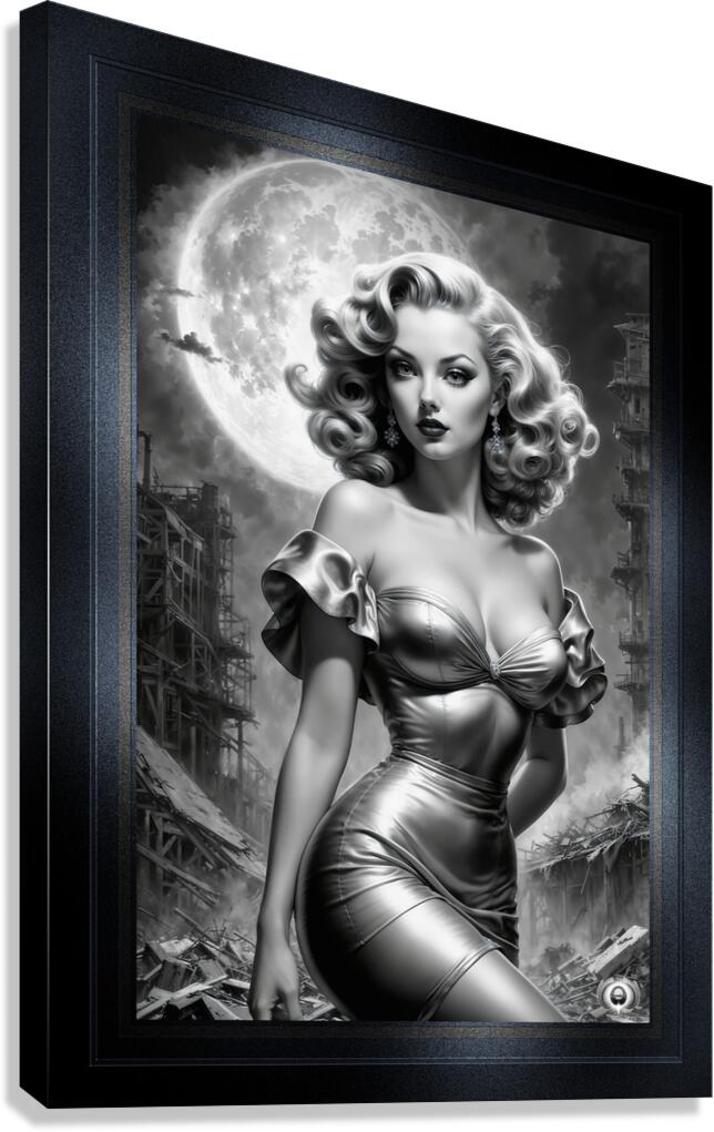 STUNNING ATOMIC AGE MOONLIT PORTRAIT OF THE RESILIENT ASTERIA GORGEOUS AI CONCEPT ART BY XZENDOR7 XZENDOR7  Canvas Print