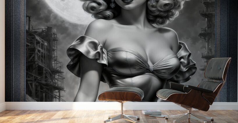 Stunning Atomic Age Moonlit Portrait Of The Resilient Asteria AI Concept Art by Xzendor7; presents a captivating monochrome artwork that explores them...[+]