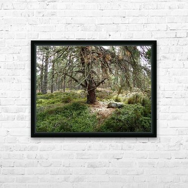 Get this artwork "Scottish Highlands Serene Forest with Mossy Tree " in a framed print.