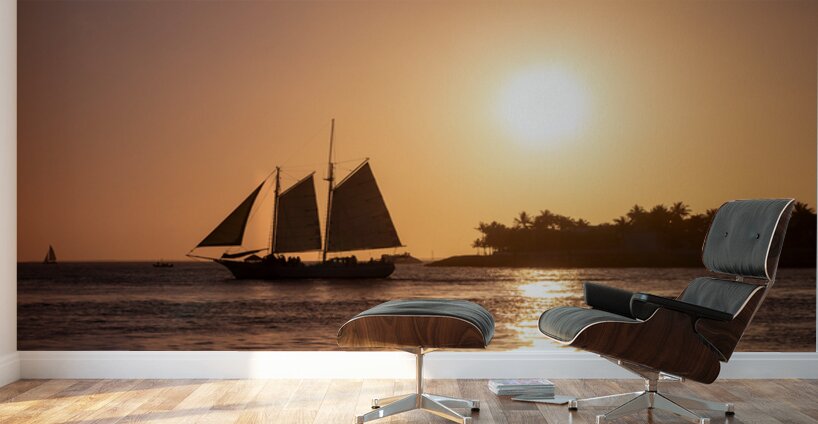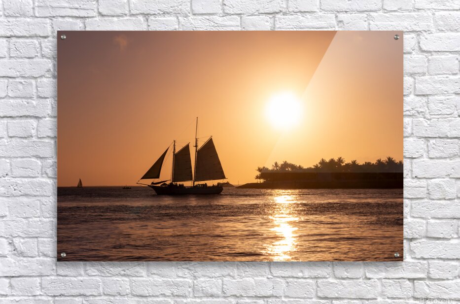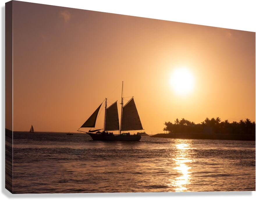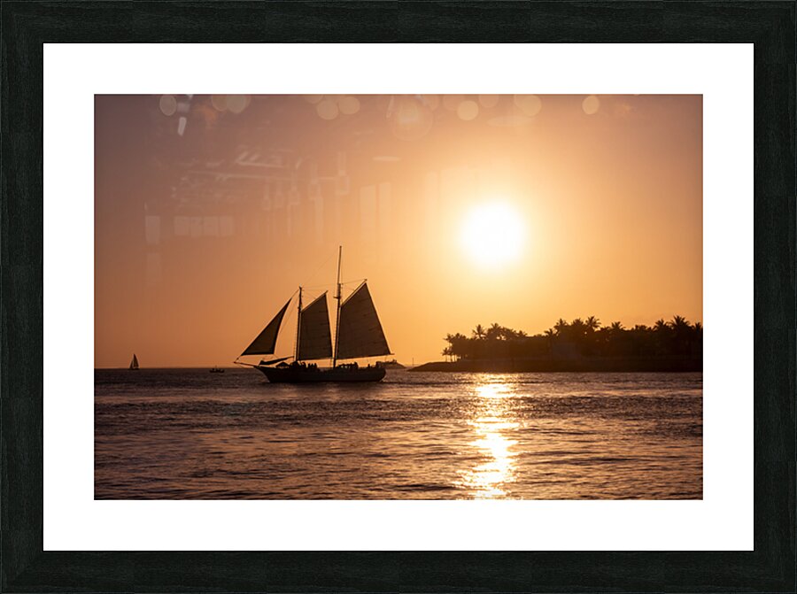 Sailboat cruise, sunset celebration view from Mallory Square in Key West, Florida Keys. Travel photography by Delphimages.