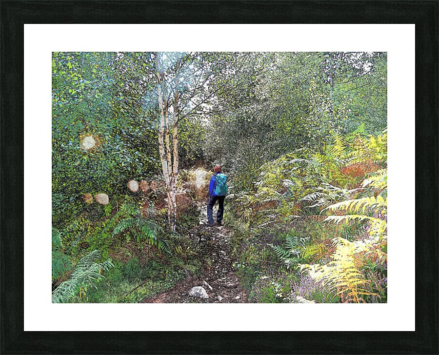 Get this artwork "Scottish Hiker in a Birch Forest " in a framed print.