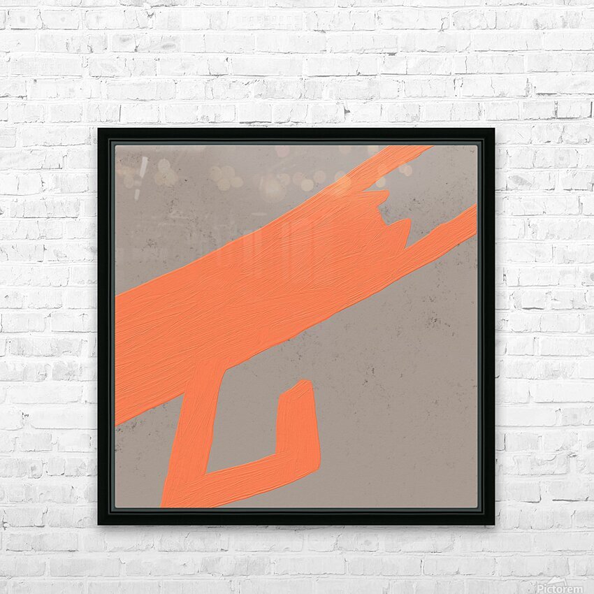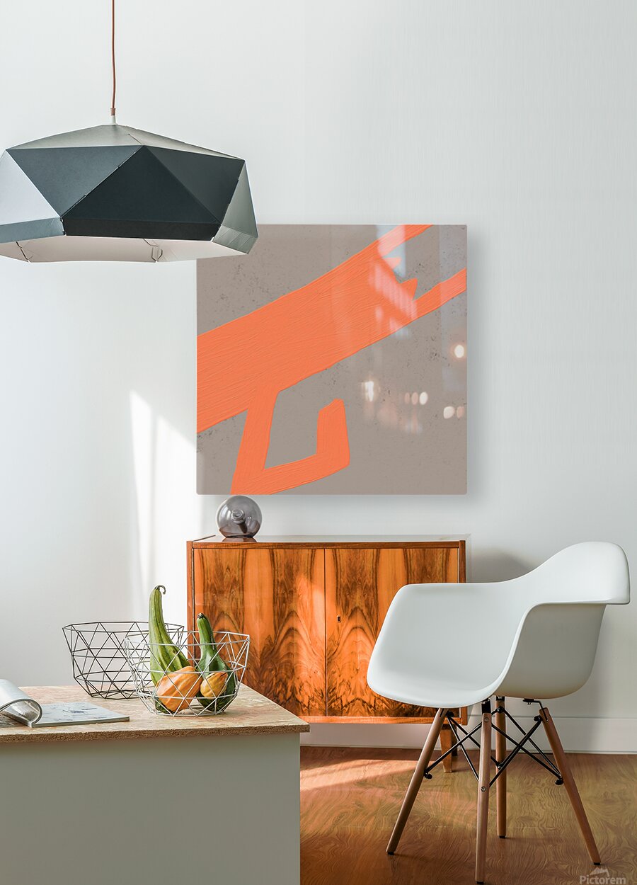 Cat Stretching in Orange on Gray  HD Metal print with Floating Frame on Back